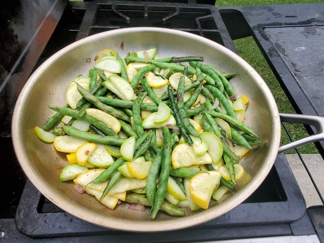 - ♥ Chop beans into about 4 – 5 cm pieces and thickly slice squash, toss gently together.